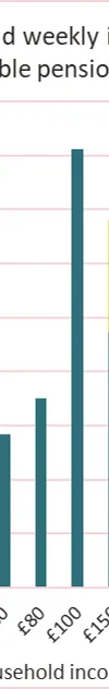 In other words, compared with eligible working age individuals, eligible pensioners are a bit less likely to have very low incomes, but much more likely to have higher incomes suggesting they do not need a social tariff. This can be seen in the chart below for eligible pensioners. The yellow bars – those above the standard MIS – are a much bigger share of all eligible pensioners.