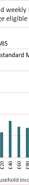 - Among working age individuals in households with income below the restricted MIS, almost three quarters are not working and receive all their income from government. For those in households with incomes above the standard MIS, only around a third are non-working and fully reliant on government for all their income.